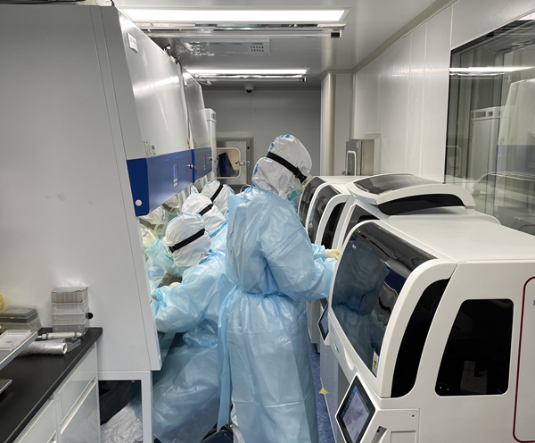 实验室是三班倒,24小时不停转的运作模式,数十台仪器一刻不停地工作着,30万人份样本,我们每天要进行近5万人份核酸检测。